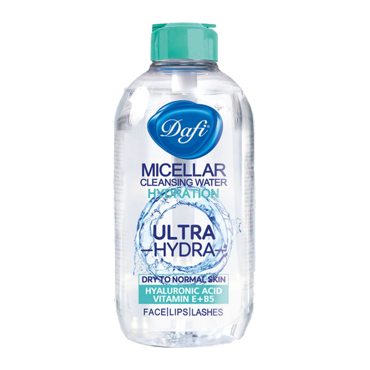 میسلار واتر دافی پوست خشک را به منظور پاک کردن آرایش از صورت، چشم و لب خود میتوانید استفاده کنید. این محصول مناسب پوستهای نرمال تا خشک بوده و حاوی هیالورونیک اسید، ویتامین E و B5 است.