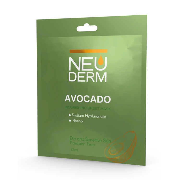 ماسک صورت حاوی آووکادو نئودرم سرشار از ویتامینهای K، C و E بوده و به دلیل خاصیت آنتیاکسیدانی از پوست در برابر آسیبهای محیطی محافظت خواهد کرد. هیالورونات سدیم به کار رفته در این ماسک نیز مانند یک مرطوبکننده عمل کرده و با افزایش هیدراتاسیون پوست، خشکی و پوسته پوسته شدن را کاهش میدهد. رتینول موجود در ماسک صورت حاوی عصاره آووکادو نئودرم نیز چروکهای اولیه را رفع کرده و با روشنسازی پوست، رنگ آن را یکدست خواهد کرد.